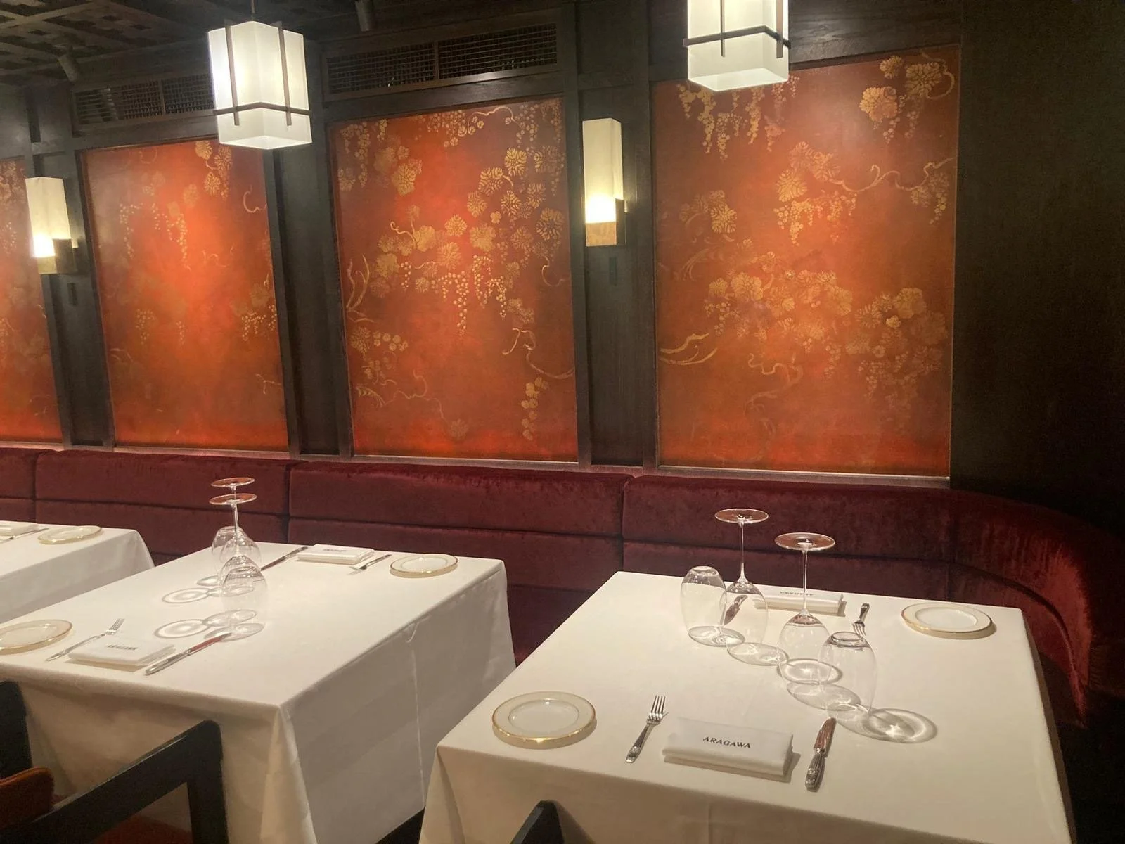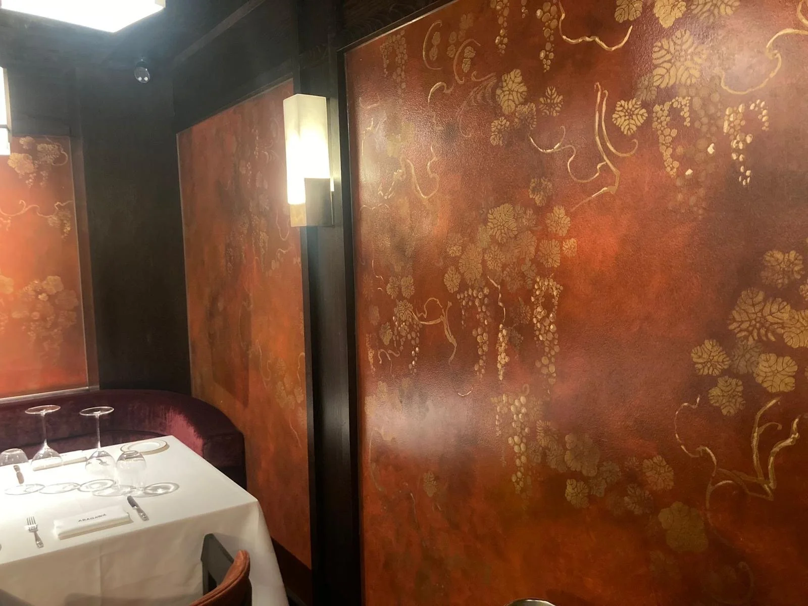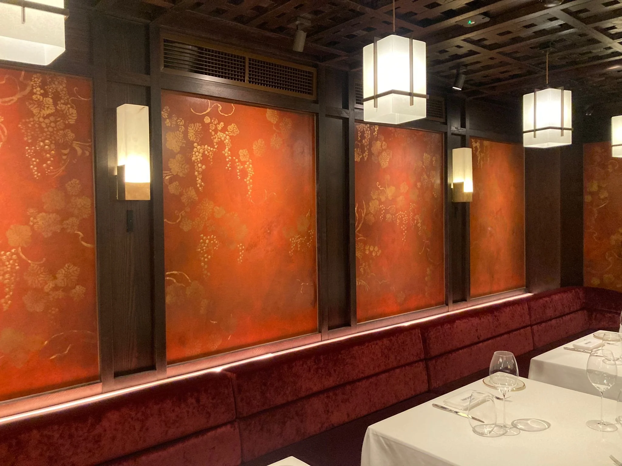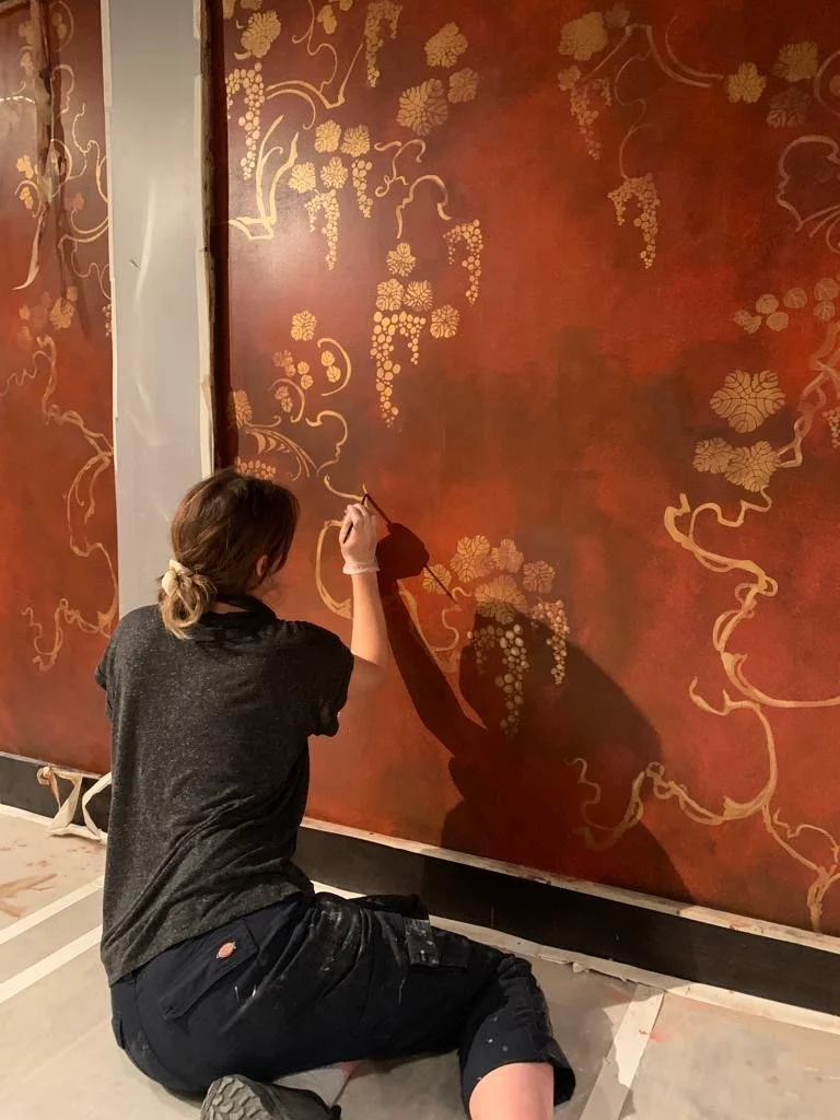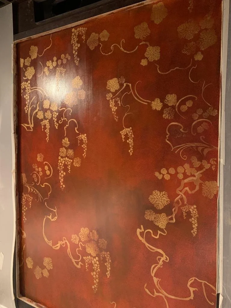 Hand painted cherry blossom panels in a mottled effect with gold leaf detail